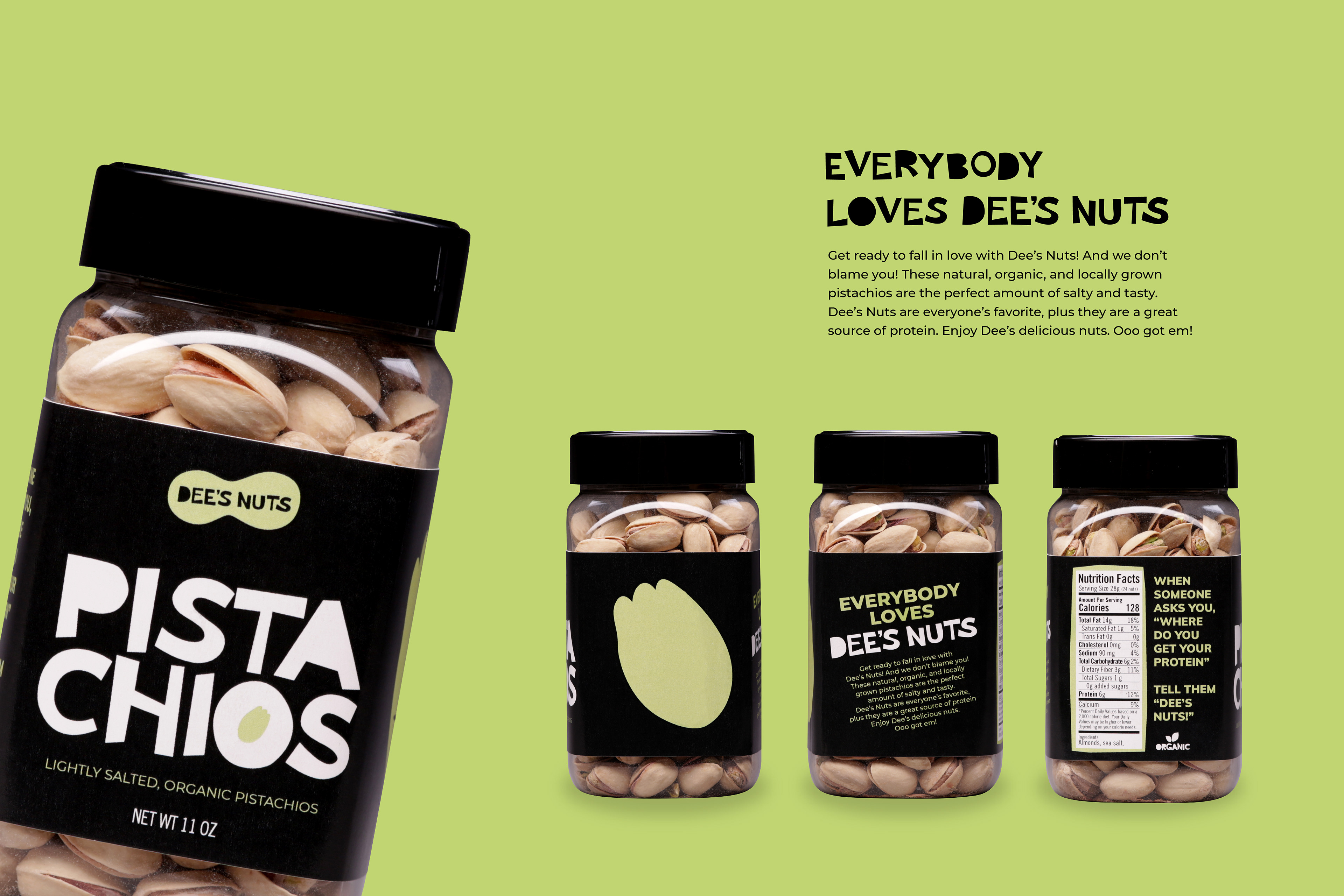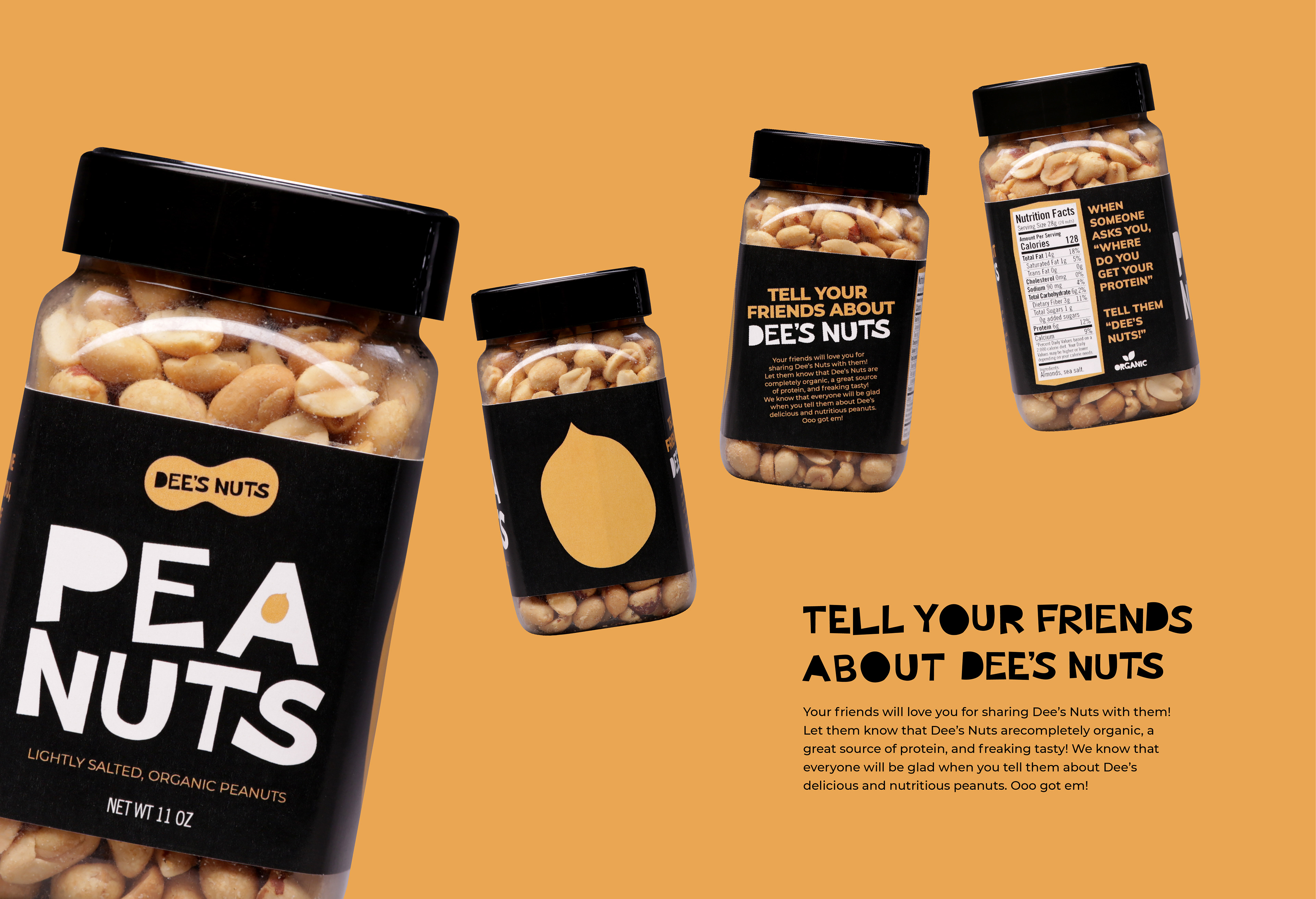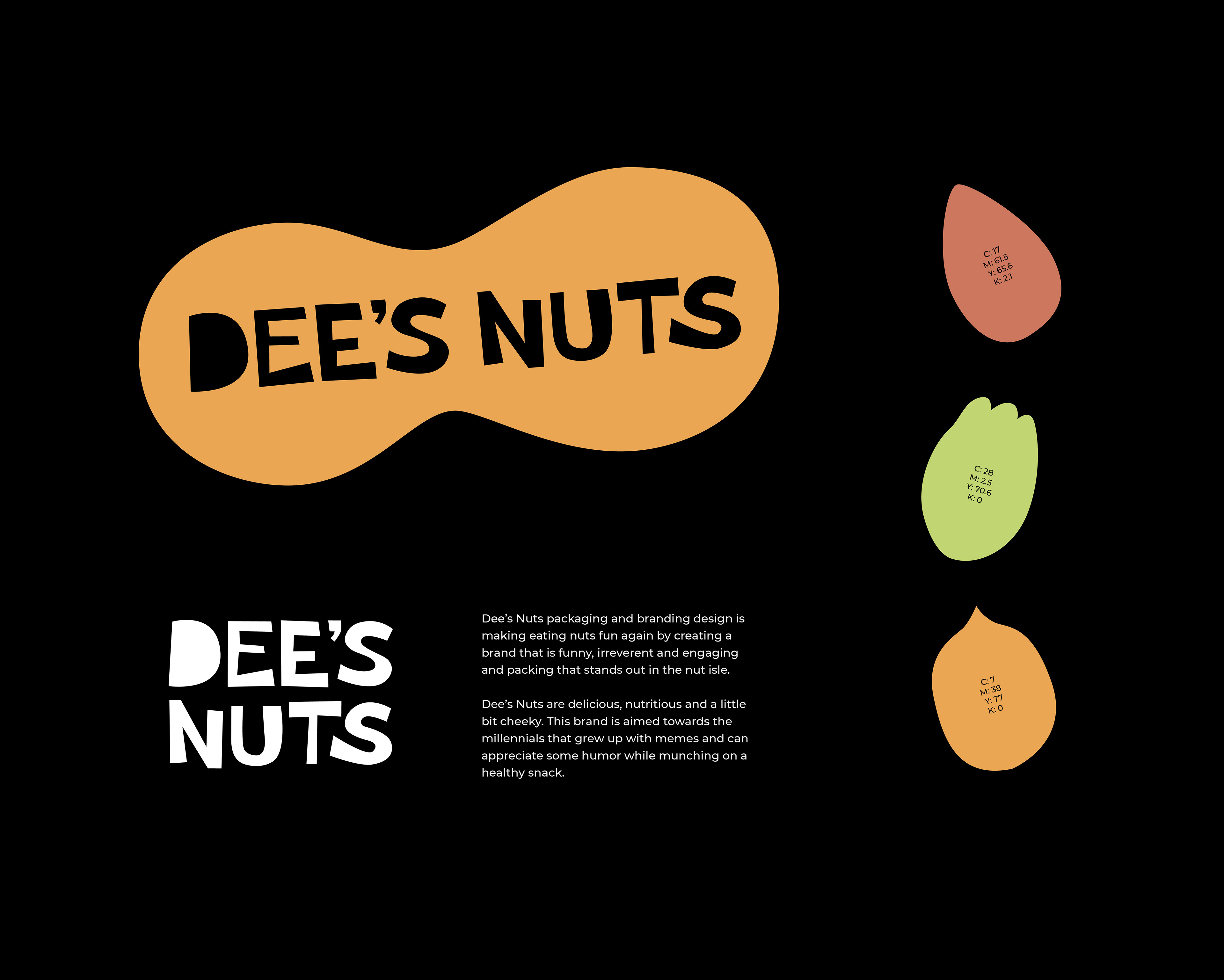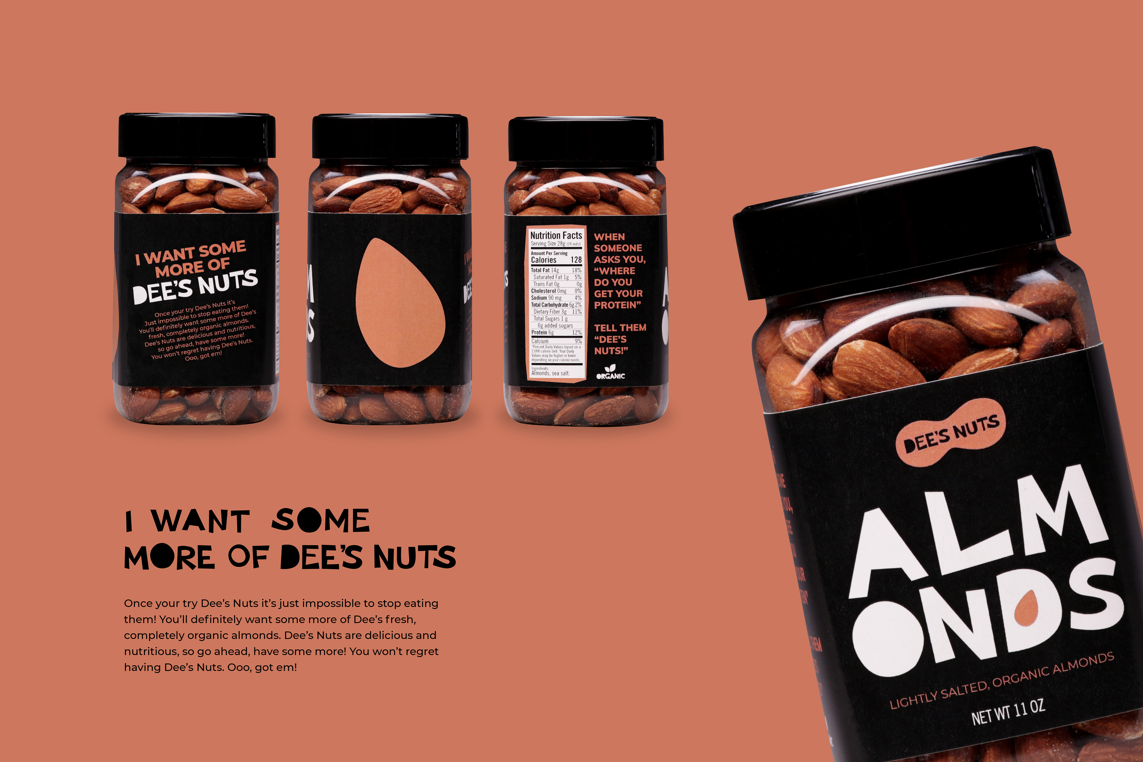 Dee's nuts? Got eem! This was a student project for a nuts company that I made up. All design and photography by me.